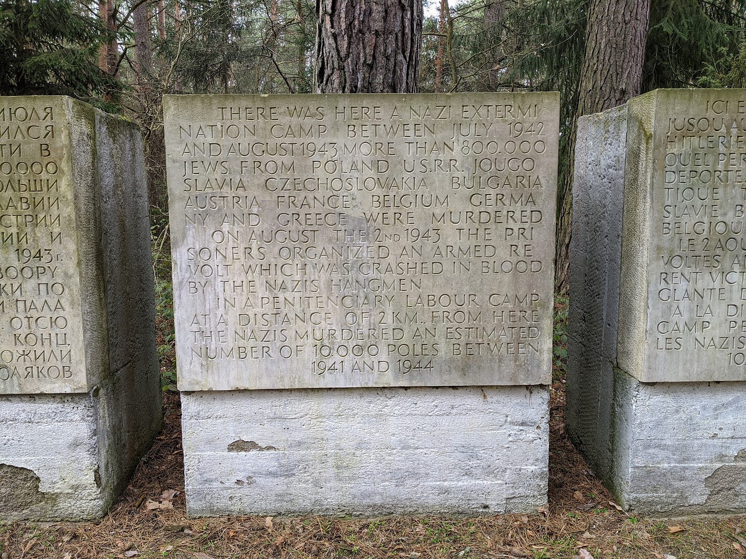 Welcome to Garrison Notes, a letter of marginalia from the education of a soldier. Today’s letter was to be a note on the stories of Shirley Hazzard, who was born on this day in 1931. But a post by alex kershaw reminded me at once that this week marks International Holocaust Remembrance Day (a holiday declared by the UN General Assembly, not to be confused with Yom HaShoah, established by the Knesset) and of a past trip to Treblinka. Those reminders moved me to record some thoughts on Treblinka instead. Thank you for reading. Your thoughts are eagerly welcomed.